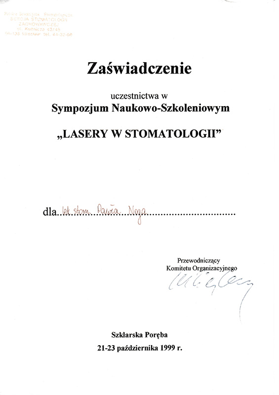 Uczestnik licznych kursów szkoleniowych i konferencji naukowych; krajowych i zagranicznych. W pracy klinicznej swój czas poświęca głównie pacjentom z chorobami przyzębia. Organizator i wykładowca wielu kursów doskonalących w zakresie periodontologii. Pasjonuje się również stomatologią odtwórczą i endodoncją. W pracy zawodowej sporo czasu poświęca też na tzw. general dentistry, obejmującą szeroki wachlarz usług stomatologicznych, od stomatologii zachowawczej po rekonstrukcyjną protetykę stomatologiczną.